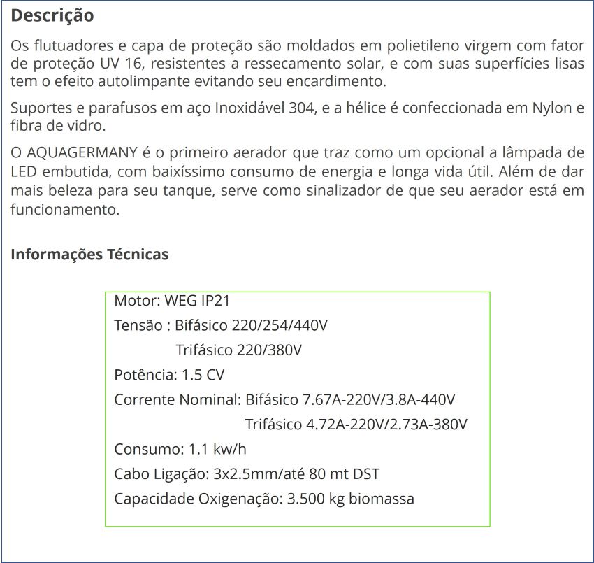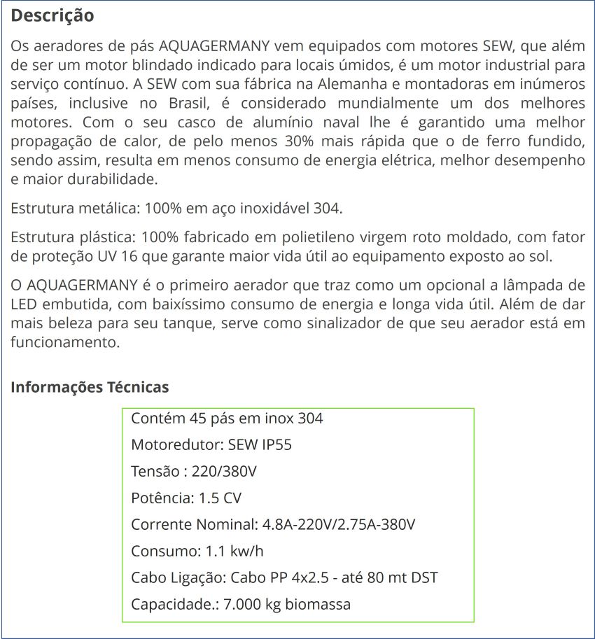 Aerador de Pás 1.5 CV c/ 45 Pás Inox