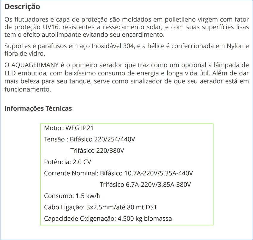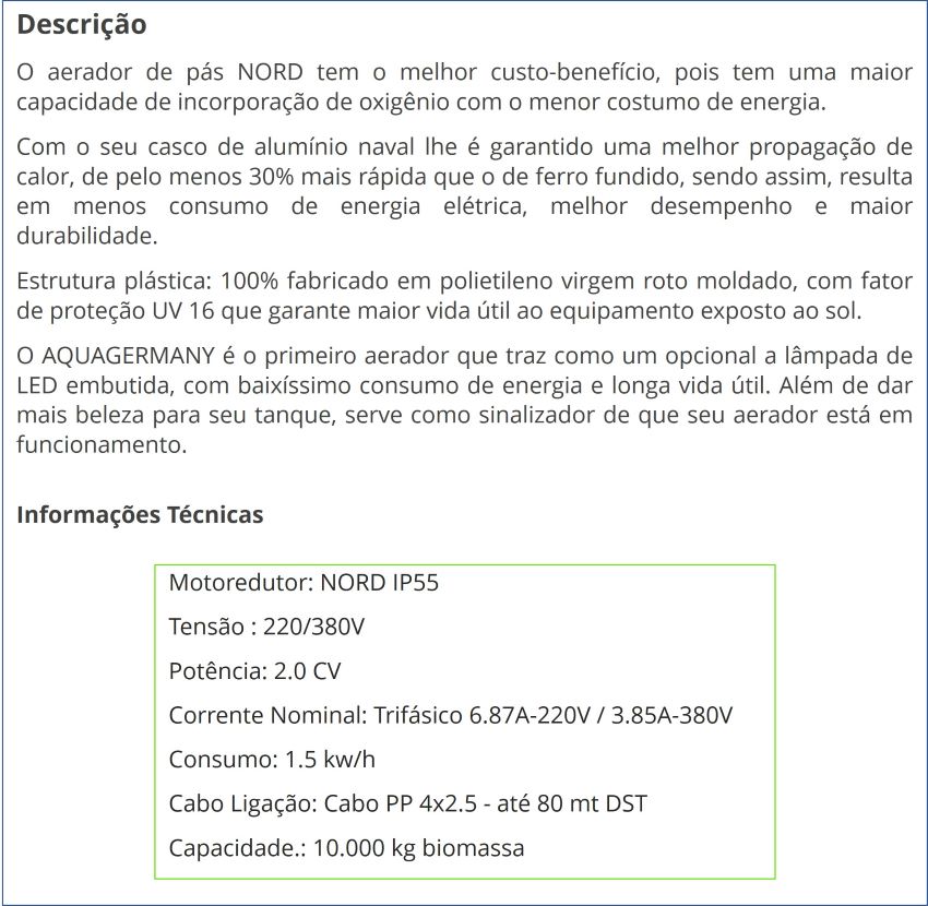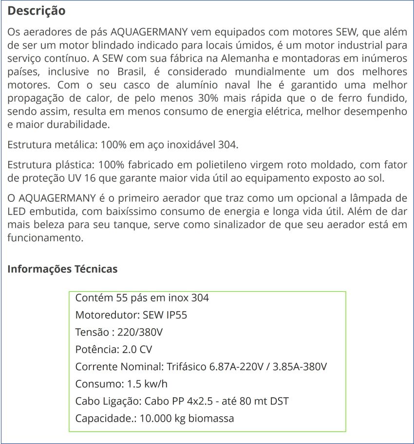 Aerador de Pás 2.0 CV c/ 55 Pás Inox