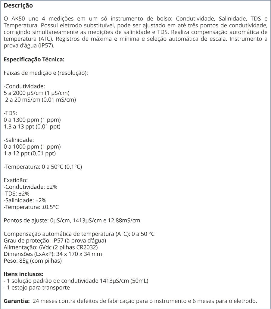 Medidor Multiparâmetro à Prova d'Água - AK50